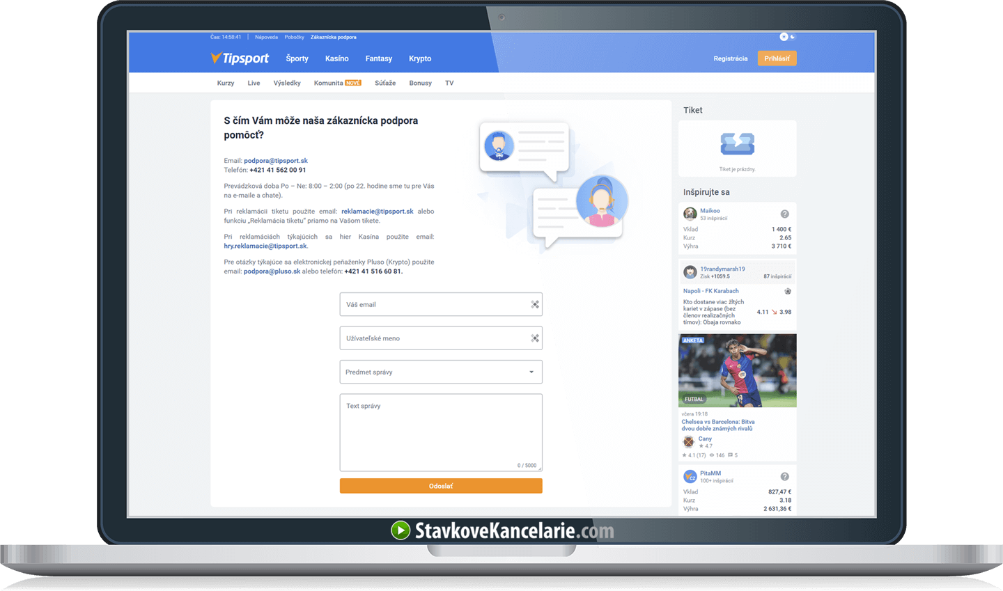 Aj v tej najlepšej stávkovej kancelárii sa môže vyskytnúť problém – nejasnosti pri vyhodnotení tiketu, technický výpadok či otázky k bonusu. Vtedy rozhoduje úroveň zákazníckej podpory. Slovenské stávkové kancelárie ponúkajú podporu:
