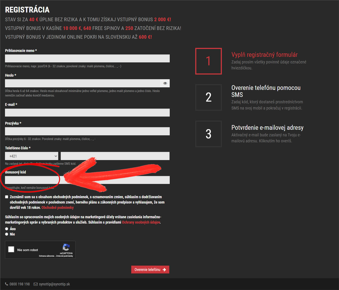 1️⃣ Potrebujem na SynotTip bonus promo kód?